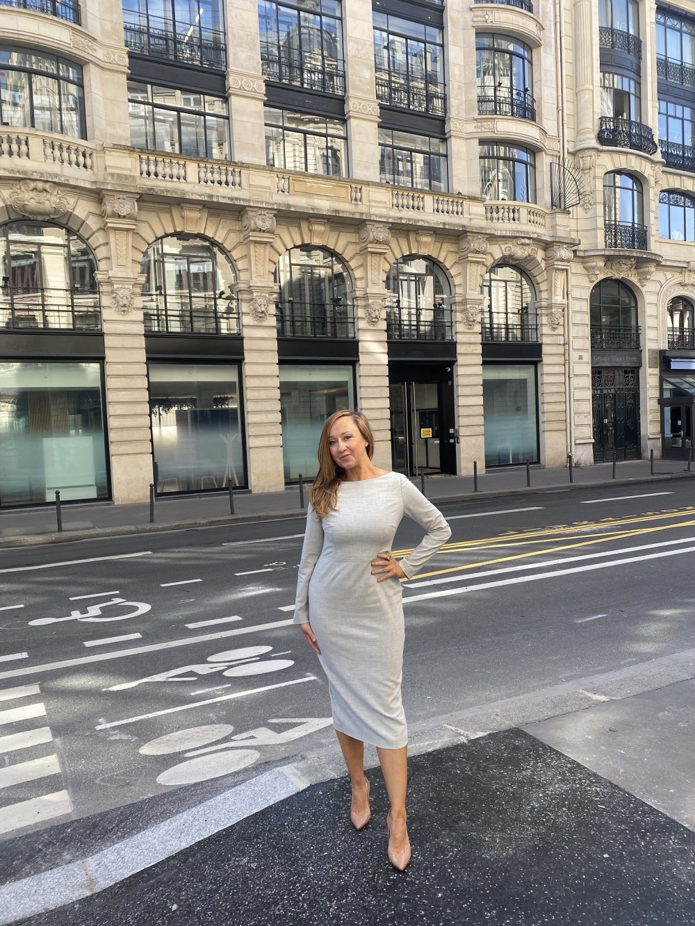 Präsentieren Sie das "Preciosa"-Kleid, ein elegantes Midi-Kleid in einem schicken Grauton. Dieses ausgestellte Kleid strahlt Eleganz aus und ist perfekt für geschäftliche Umgebungen oder formelle Anlässe. Das sorgfältig maßgeschneiderte Design betont Ihre Silhouette und sorgt dabei für Komfort und Selbstbewusstsein. Egal, ob Sie es im Büro oder zu einem geschäftlichen Meeting tragen, das Preciosa-Kleid sorgt dafür, dass Sie mit seinem zeitlosen Stil und Anmut einen bleibenden Eindruck hinterlassen.